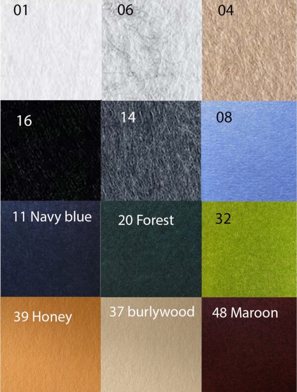 | Color | 04 Beige, 08 blue, 1 White, 11 navy blue, 14 dark grey, 16 black, 20 forest, 32 green, 37 burlywood, 39 honey, 48 maroon, 6 silver |