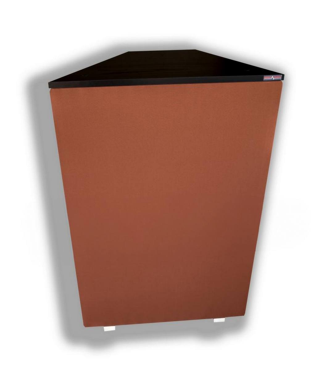 By taking these factors into account, we design our membrane corner bass traps to be as effective as possible while leaving the trebles untouched. Above 600 Hz, sound waves cannot pass through the leather material, ensuring that the high frequencies are preserved while bass frequencies are controlled. This allows us to maintain perfect linearity in the acoustics of studios, hi-fi systems, and home theatre rooms.