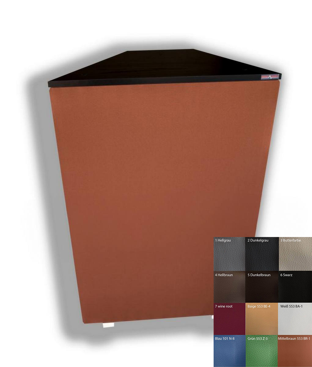 The surface is covered with acoustic velvet, which helps prevent dust emission. The touch, look, and texture of the material are identical to real leather, offering a sleek, professional appearance.