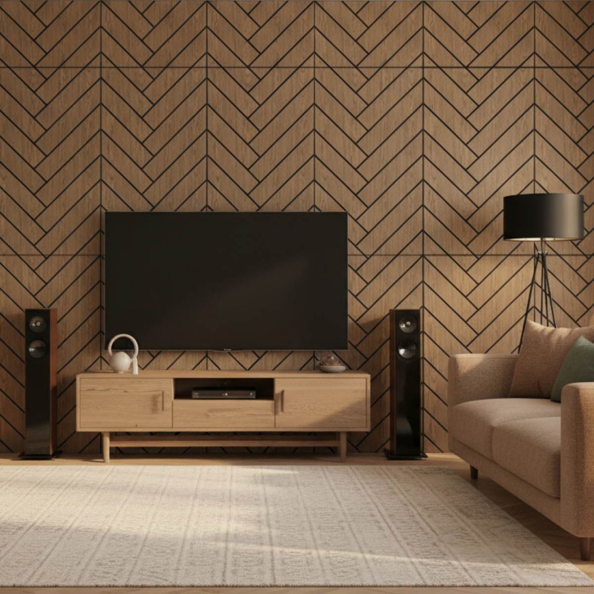 The Freja parquet-patterned acoustic panel combines refined design with effective sound absorption, making it an ideal solution for spaces where both aesthetics and acoustic comfort matter. Built on a 9 mm felt base with a genuine oak surface, it brings a warm, natural wood texture that enhances any room with elegance and style.